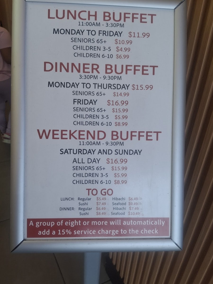 The buffet offerings here are especially noteworthy. For just **$11.49 during lunch** on weekdays, indulge in a feast that includes an expansive selection of **delicious Chinese dishes**, a tantalizing **sushi bar**, and a lively **Hibachi grill**—where you'll savor perfectly cooked proteins and veggies, customized to your preference. The **dinner buffet** serves even more delectable options, ranging from a variety of traditional entrees to innovative bites, priced at **$15.49** from Monday to Thursday, and slightly higher on weekends. Special discounts for seniors and children make it accessible for families.